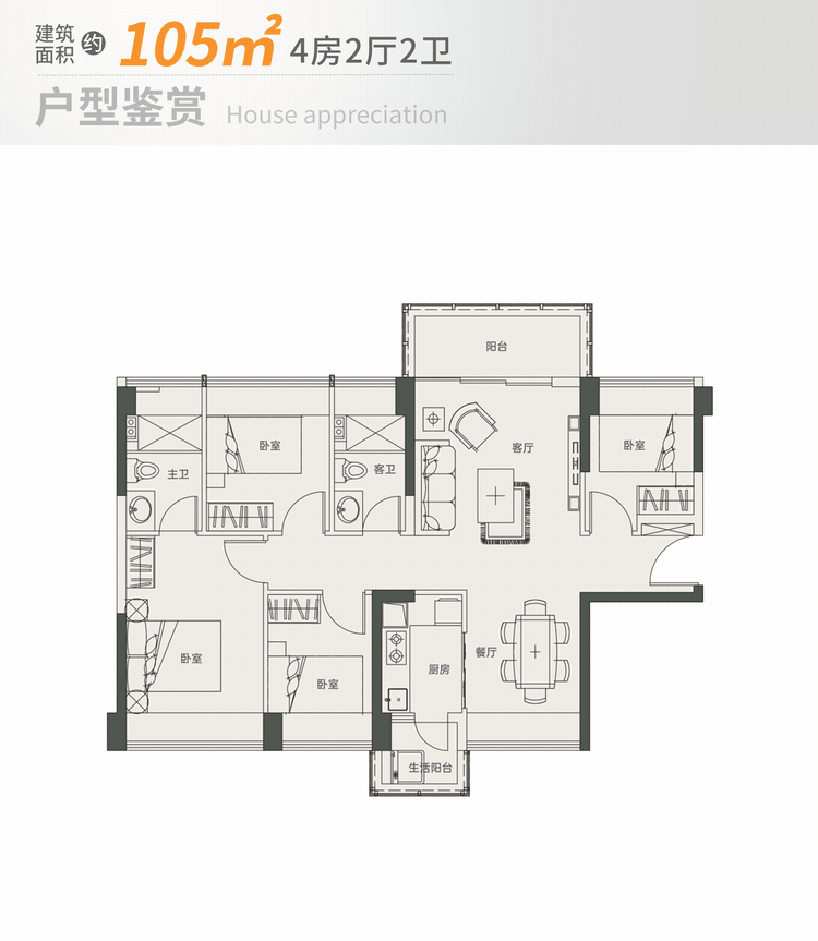 建面约105㎡4房2厅2卫是楼王单元,