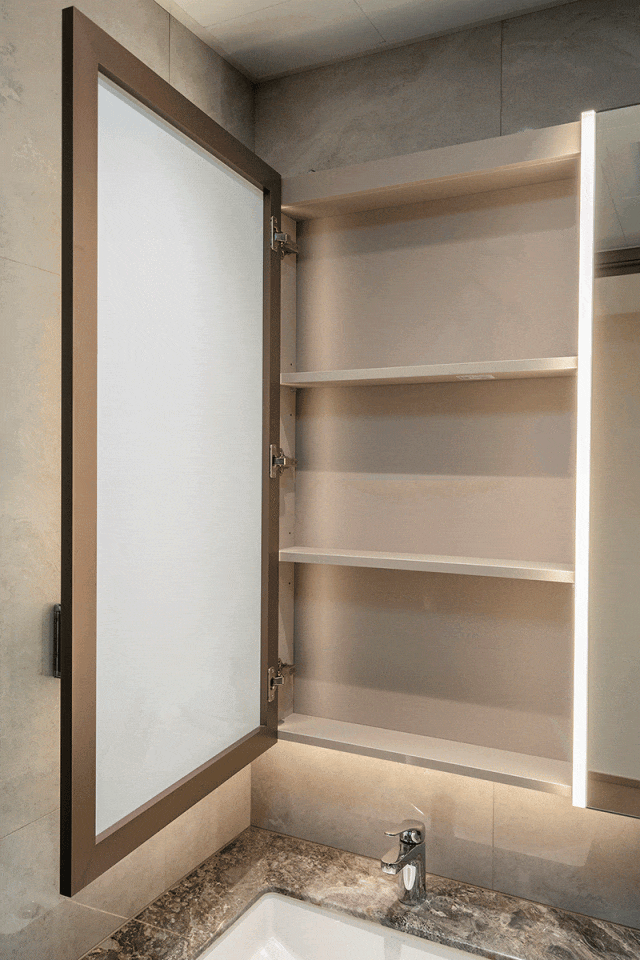 整个户型大量赠送飘窗、预留收纳空间,以及风暖、镜柜;让忙碌的早高峰不消争抢;